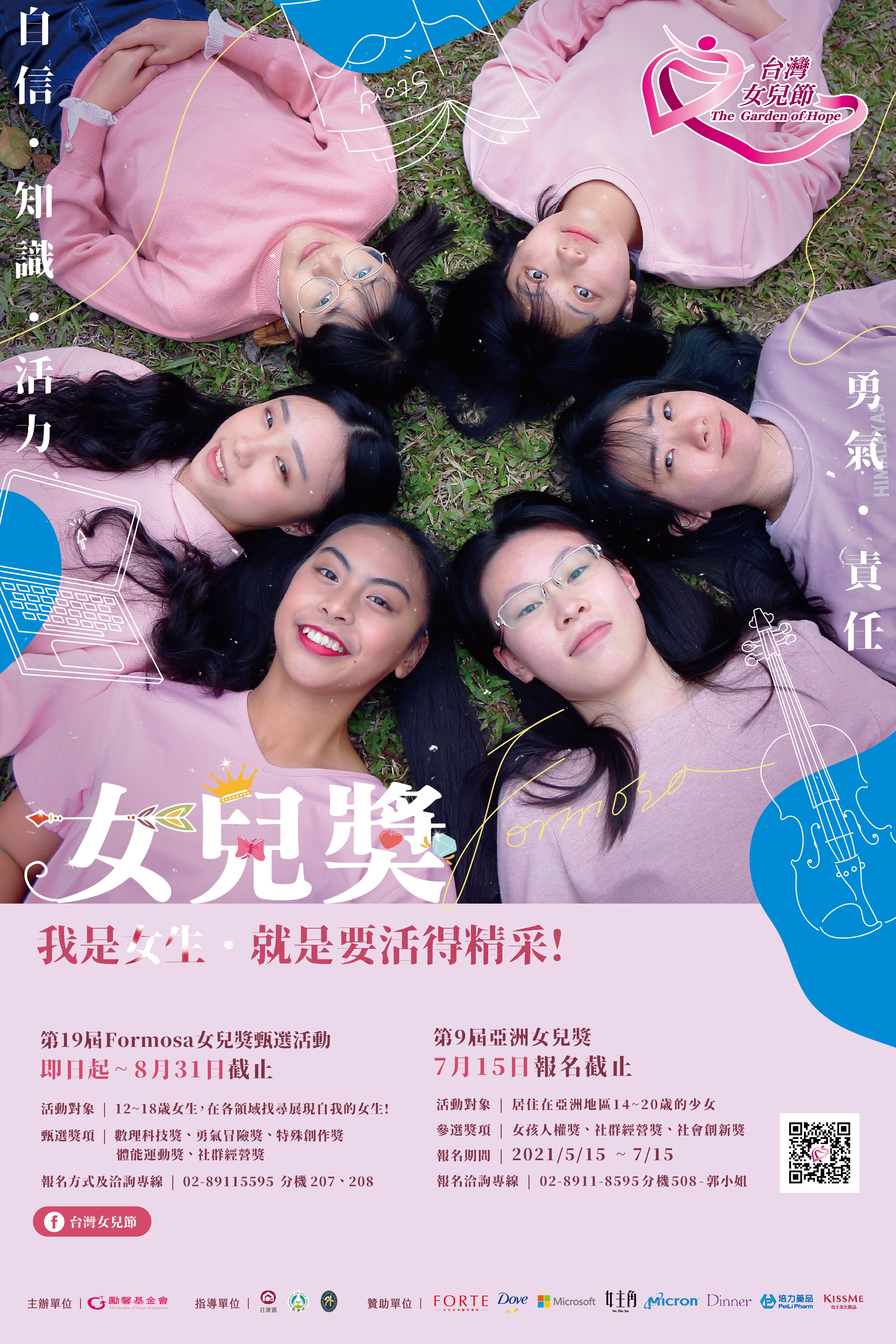 一、 勵馨基金會主辦「第19屆Formosa女兒獎甄選活動」,鼓勵少女多元思考與發展、展現內在潛能、珍視自我價值,在各領域勇敢追求夢想的實現。