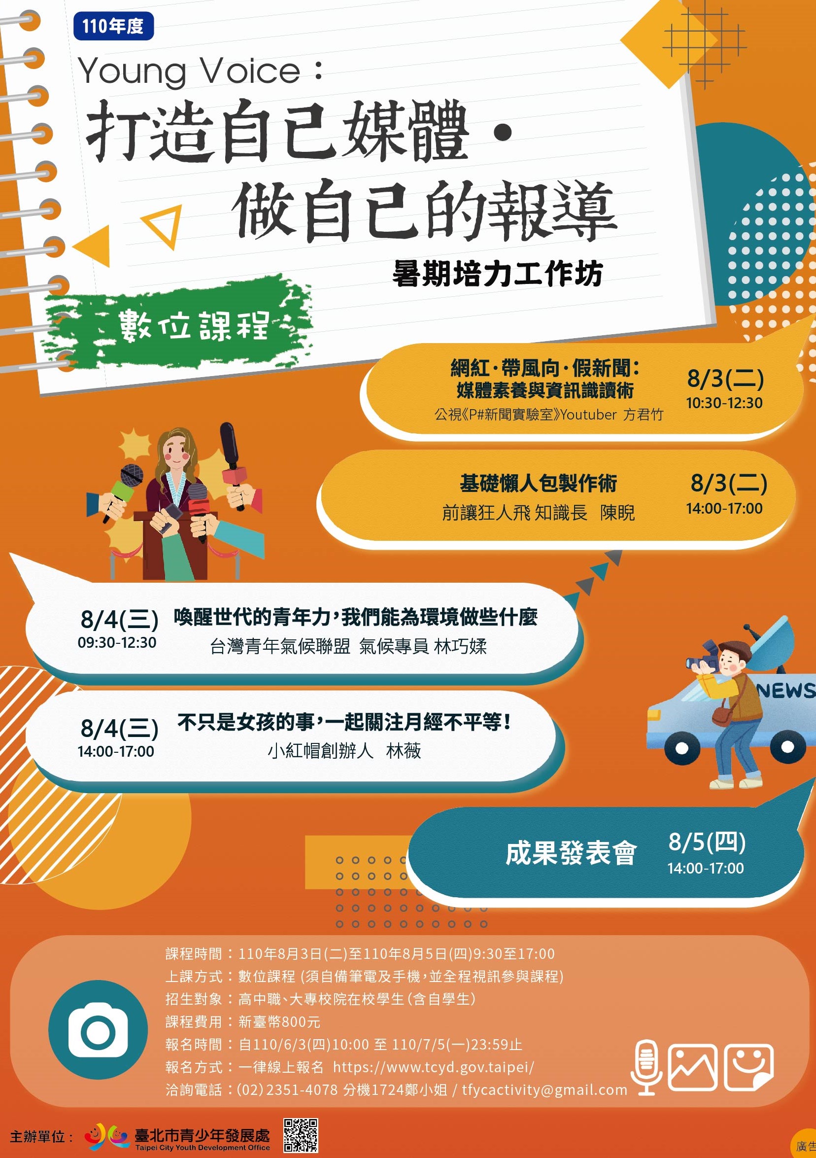 臺北市青少年發展處辦理110年度「Young Voice:打造自己媒體‧做自己的報導」暑期培力工作坊(數位課程)