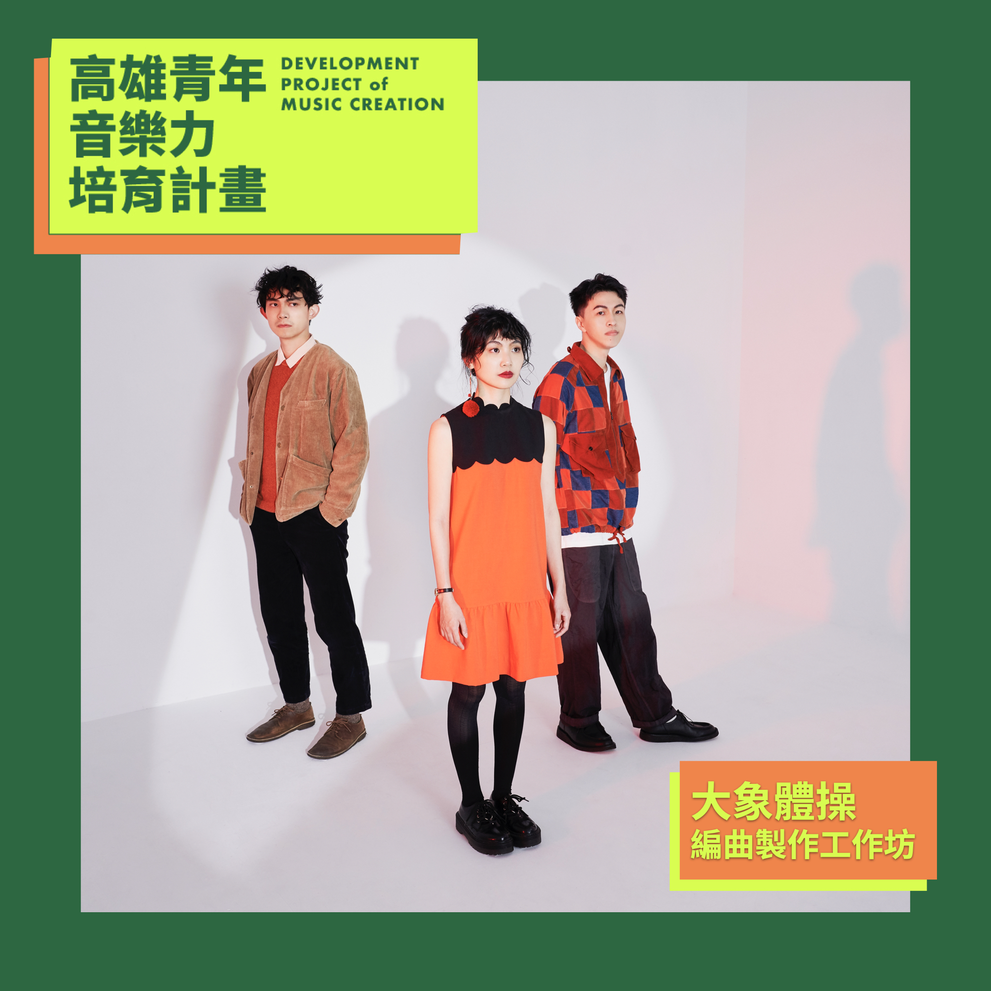 三、 活動內容:高雄市政府青年局開啟「高速青春 - 音樂力培育計畫」,邀請高雄新生代音樂青年,加入創作的行列。本次音樂訓練計畫,包含四大工作坊:「詞曲創作」、「編曲製作」、「專場企劃」、「音樂祭企劃」。每個工作坊,導師將會於線上帶領學員,實際創作歌曲、進行編曲、撰寫完整企劃書。由一步步扎實的實作,傳授導師們在音樂創作、企劃上的獨特心法。