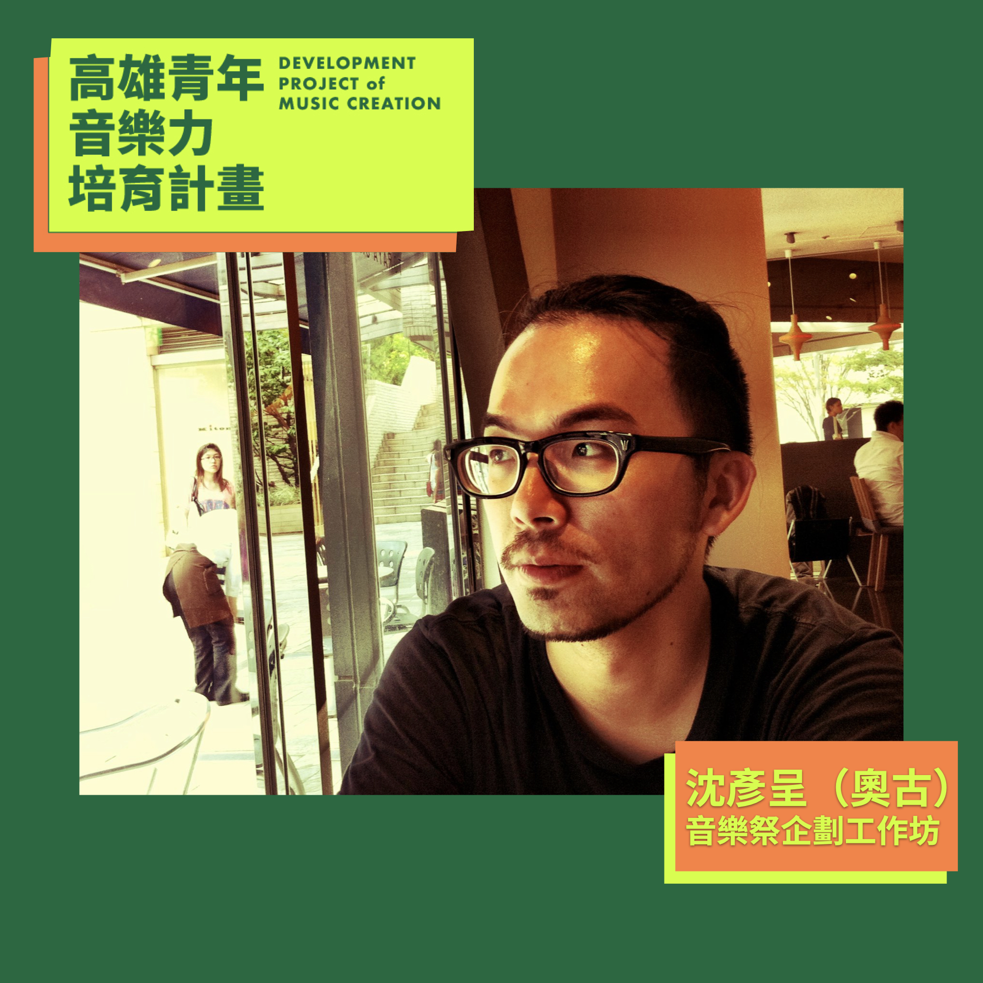 4、課程介紹:由熱愛音樂和演出現場,具豐富展演活動與跨領域整合經驗,並曾舉辦大港開唱、野台開唱、TAKAO ROCK...等音樂節活動的-沈彥呈(奧古)擔任導師,與學員進行線上課程與對談。導師「沈彥呈(奧古)」將於8/22(日)進行音樂祭企劃課程,並給予學員企劃書回饋。第一次課程後,主辦單位將進行學員分組。五人一組,每組須於下次課程時,繳交企劃書與簡報。九月份課程,每組需進行簡報,並與導師討論企劃書內容。