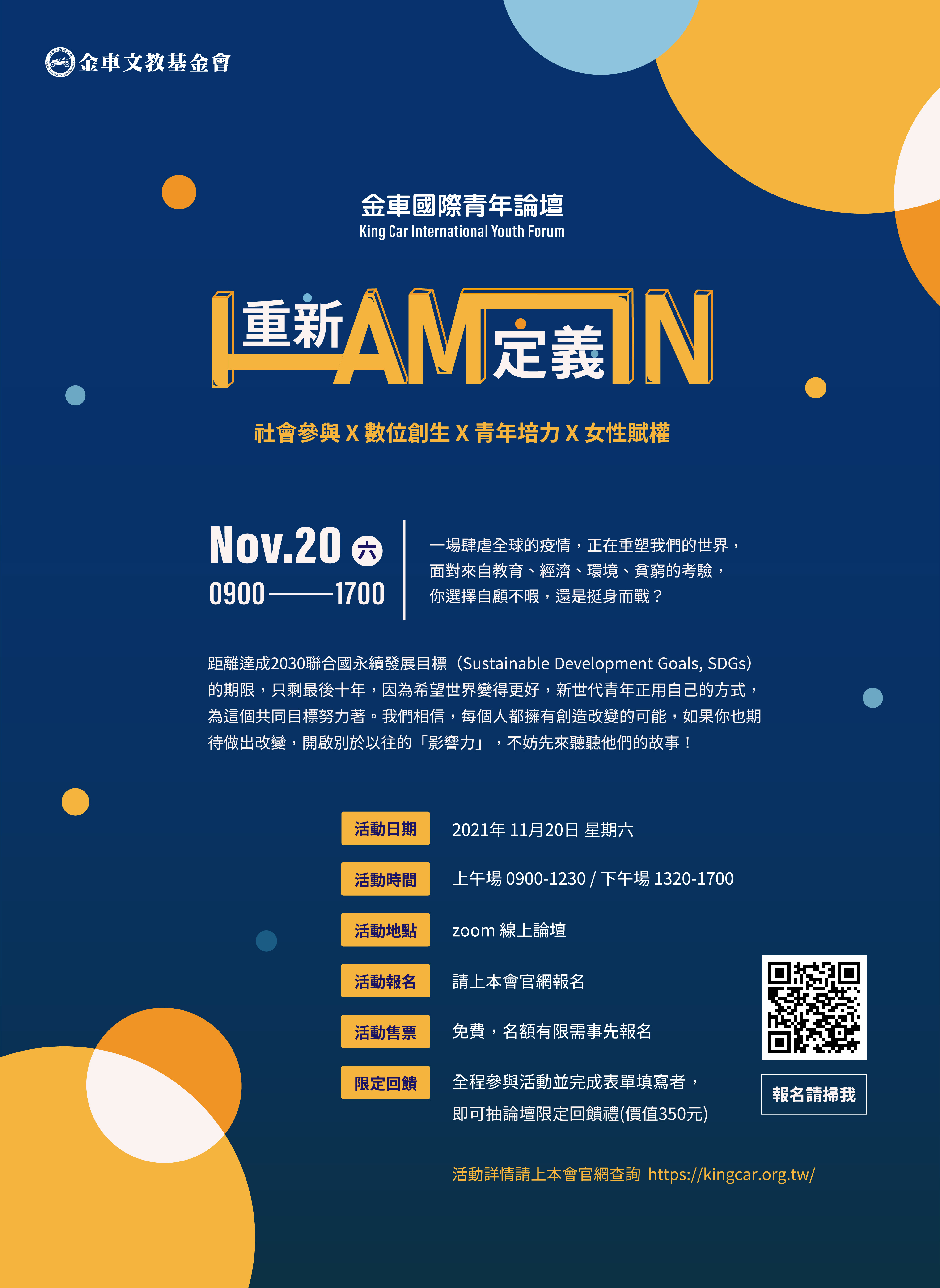 (七)活動詳情請上: kingcar.org.tw 》我要報名》國際青年論壇