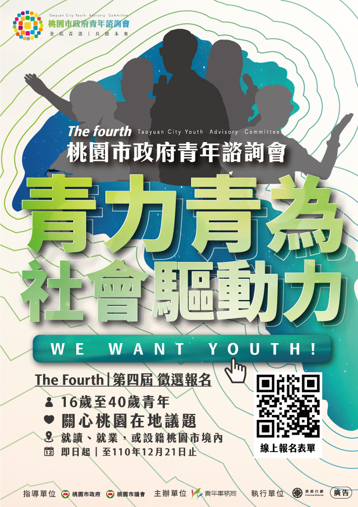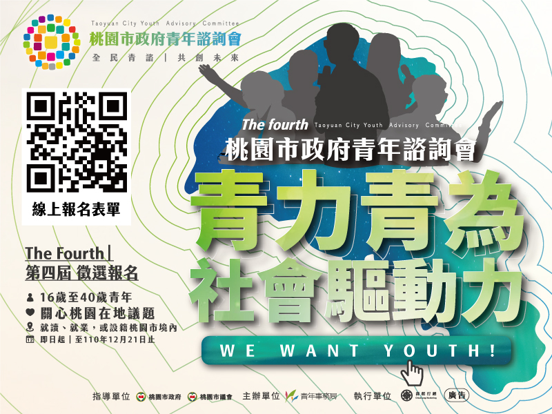 二、 鑒於第三屆青諮會(任期:109年3月29日至111年3月28日)任期將屆,現正辦理旨揭徵選活動(即日起至110年12月21日止),為廣邀對參與公共事務富熱情之青年報名,請協助宣傳事宜。