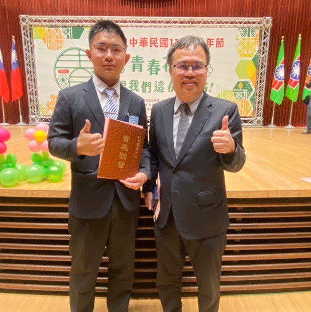 中臺科大劉冠勳、游睿為、劉耿豪同學榮獲111年全國大專優秀青年表揚
