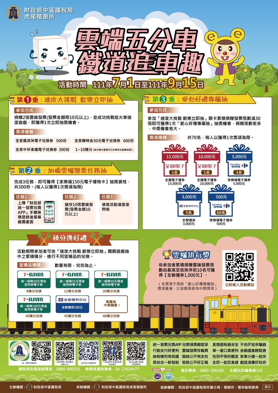 財政部中區國稅局虎尾稽徵所舉辦111年度統一發票推行暨「雲端五分車 鐵道追車趣」租稅宣導活動