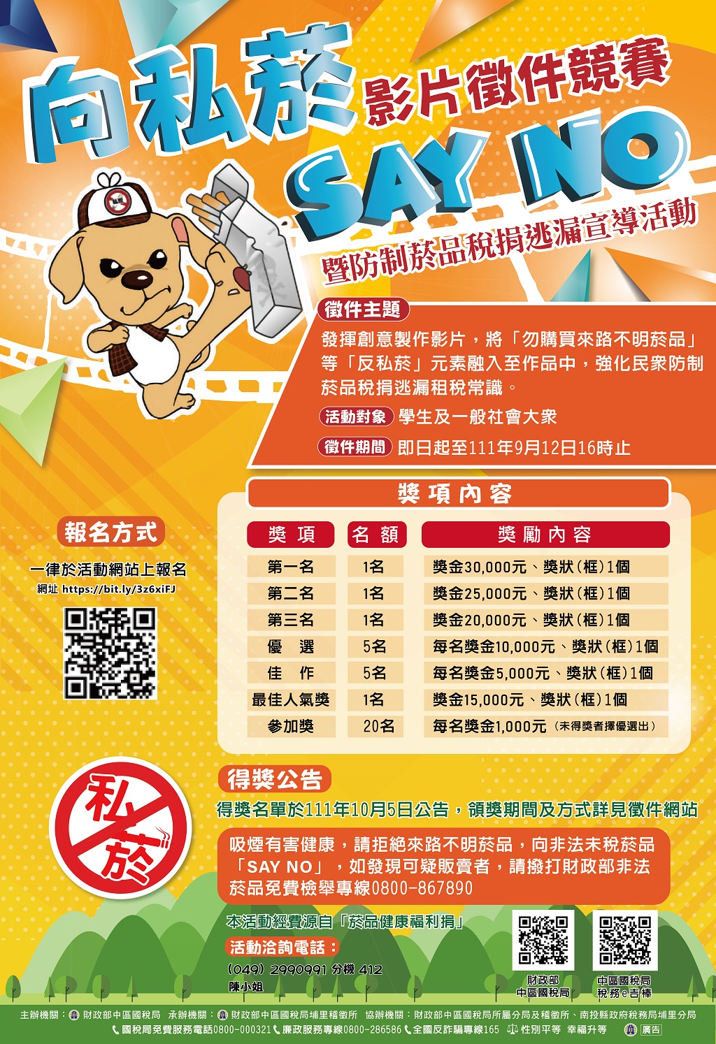 財政部中區國稅局埔里稽徵所舉辦111年度「向私菸SAY NO影片徵件競賽」暨防制菸品稅捐逃漏宣導活動