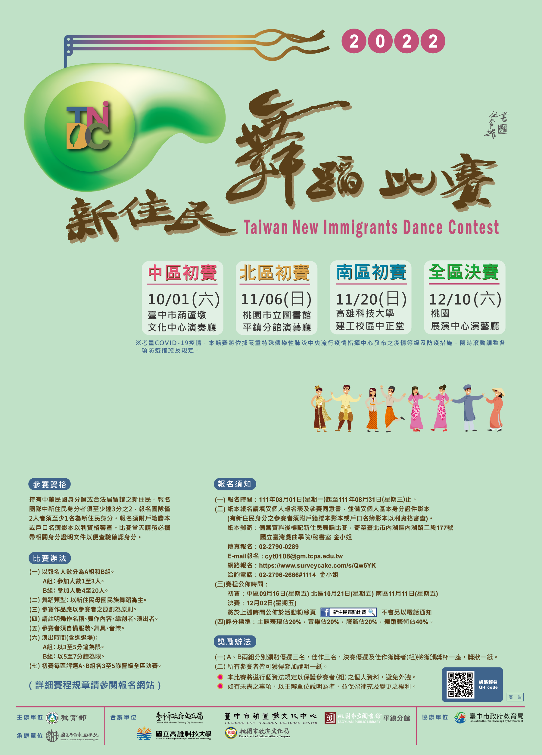 教育部委託國立臺灣戲曲學院(下稱該校)辦理2022「新住民教育揚才計畫─第七屆新住民舞蹈比賽」比賽辦法
