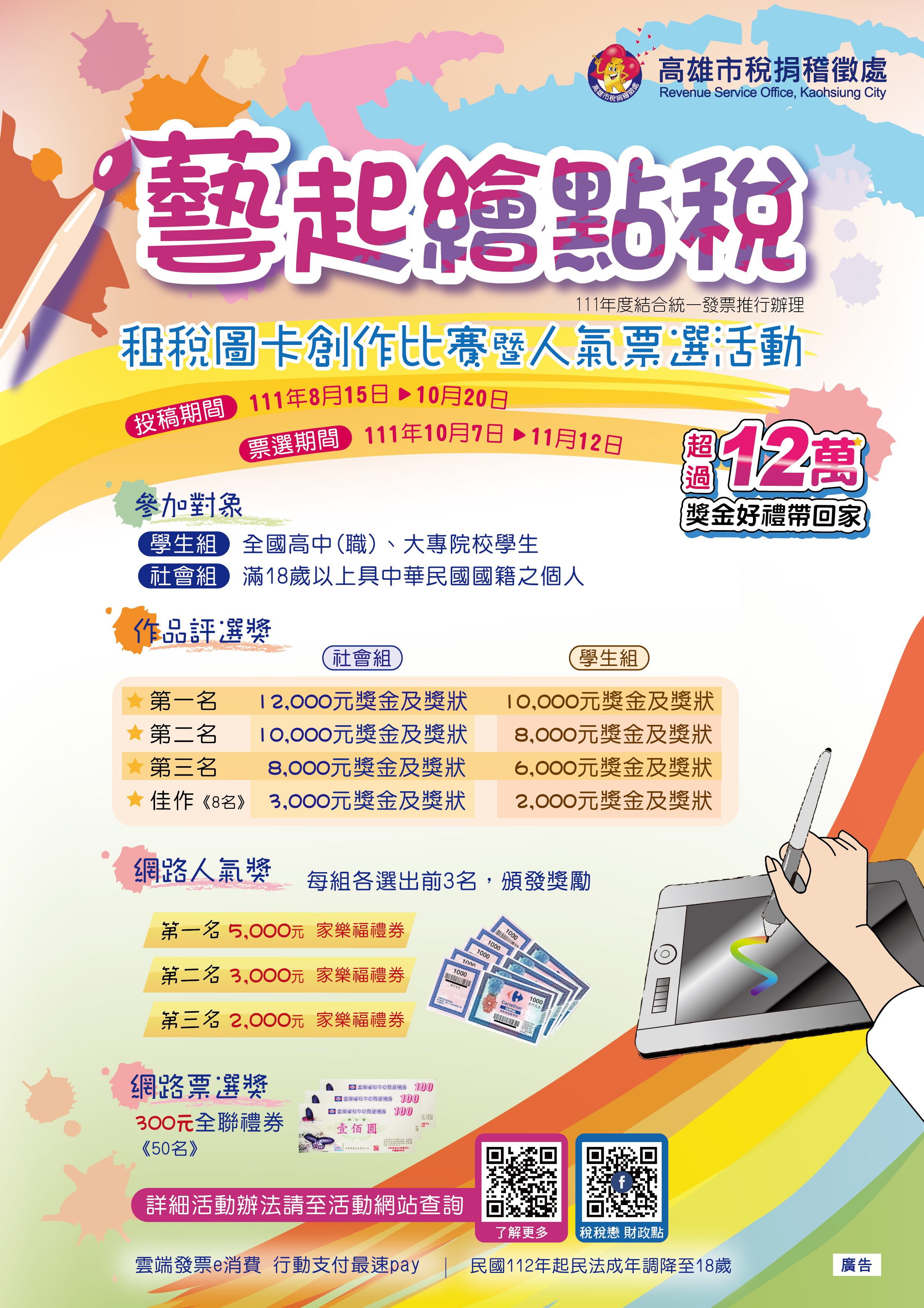 高雄市稅捐稽徵處舉辦「藝起繪點稅」租稅圖卡創作比賽暨人氣票選活動