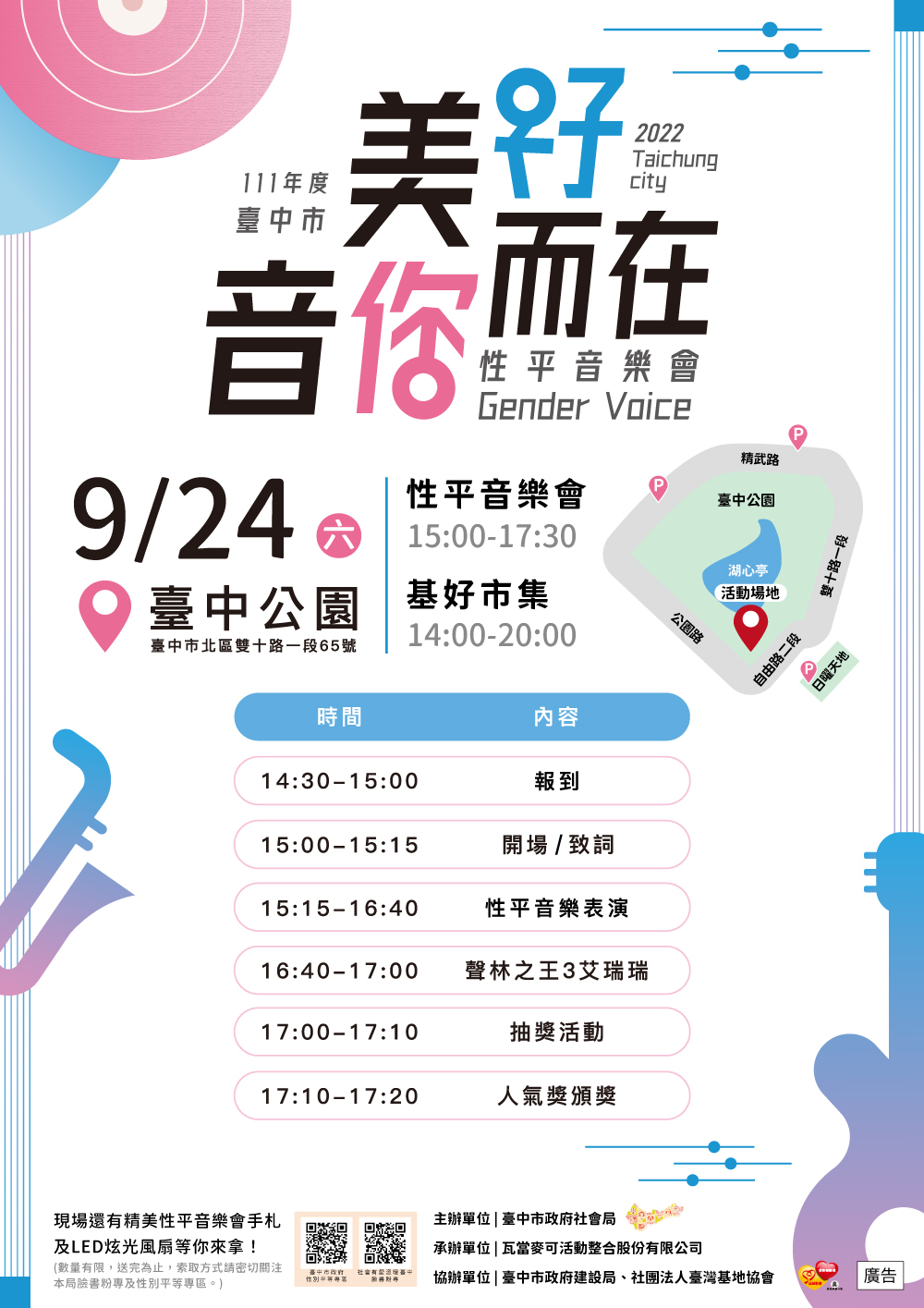 (一)時間:111年9月24日(星期六)下午3時起至下午5時30分止;性別友善市集自下午2時起至下午8時止。