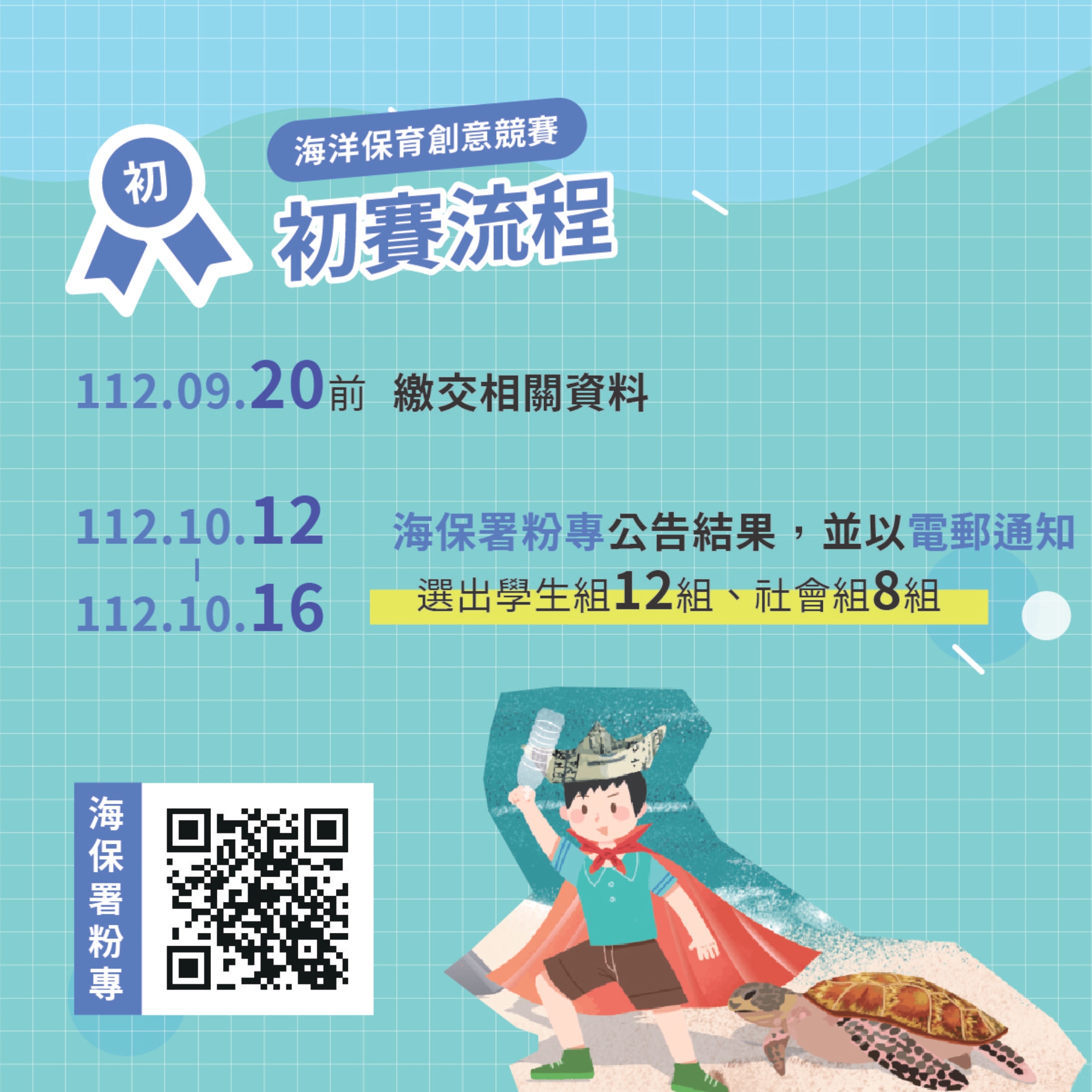 2、初賽:112年10月上旬(線上內部審查後公告)。