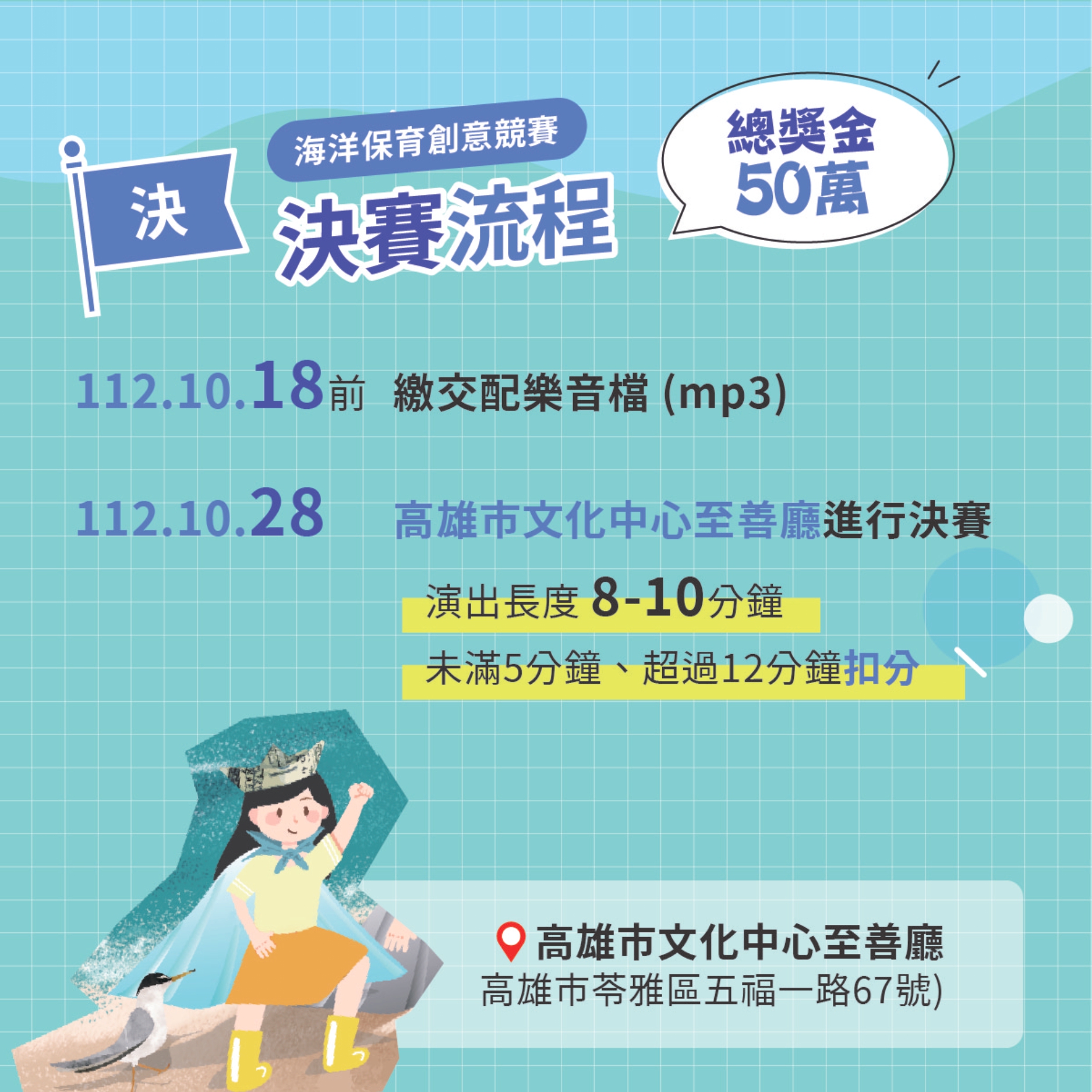 3、決賽:112年10月28日(高雄市文化中心至善廳)。