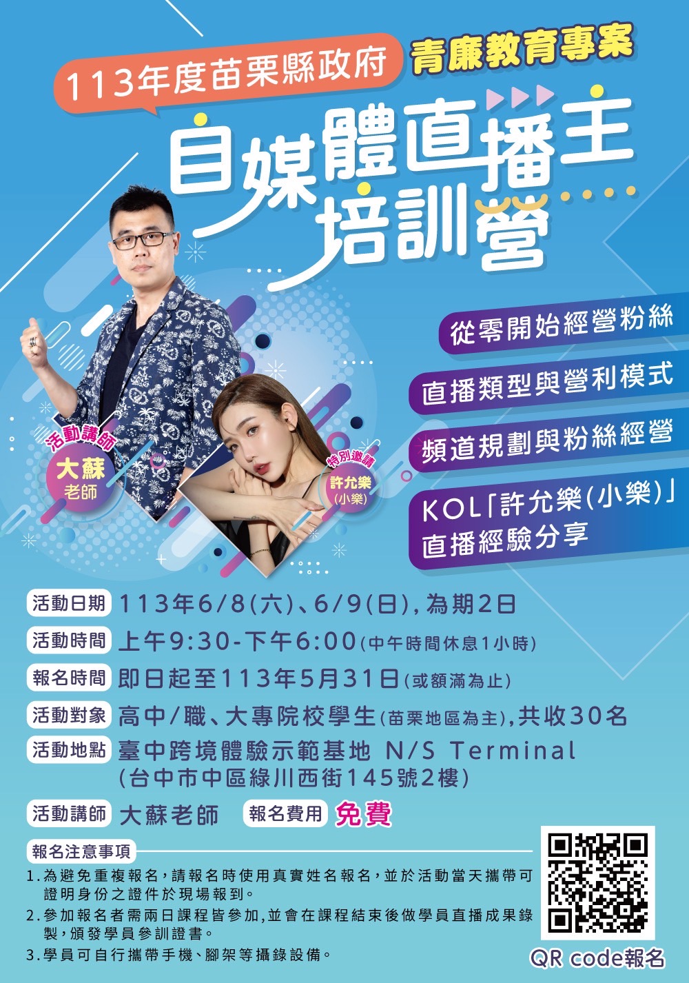 「113年苗栗縣政府青廉教育之直播主培訓營」